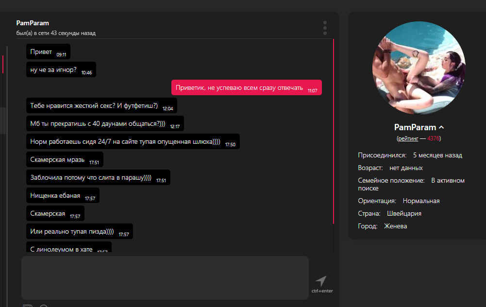 Бедненький расплакался и начал оскорблять, малыши, если вам 18 нет, дрочите на порно, мне не пишите